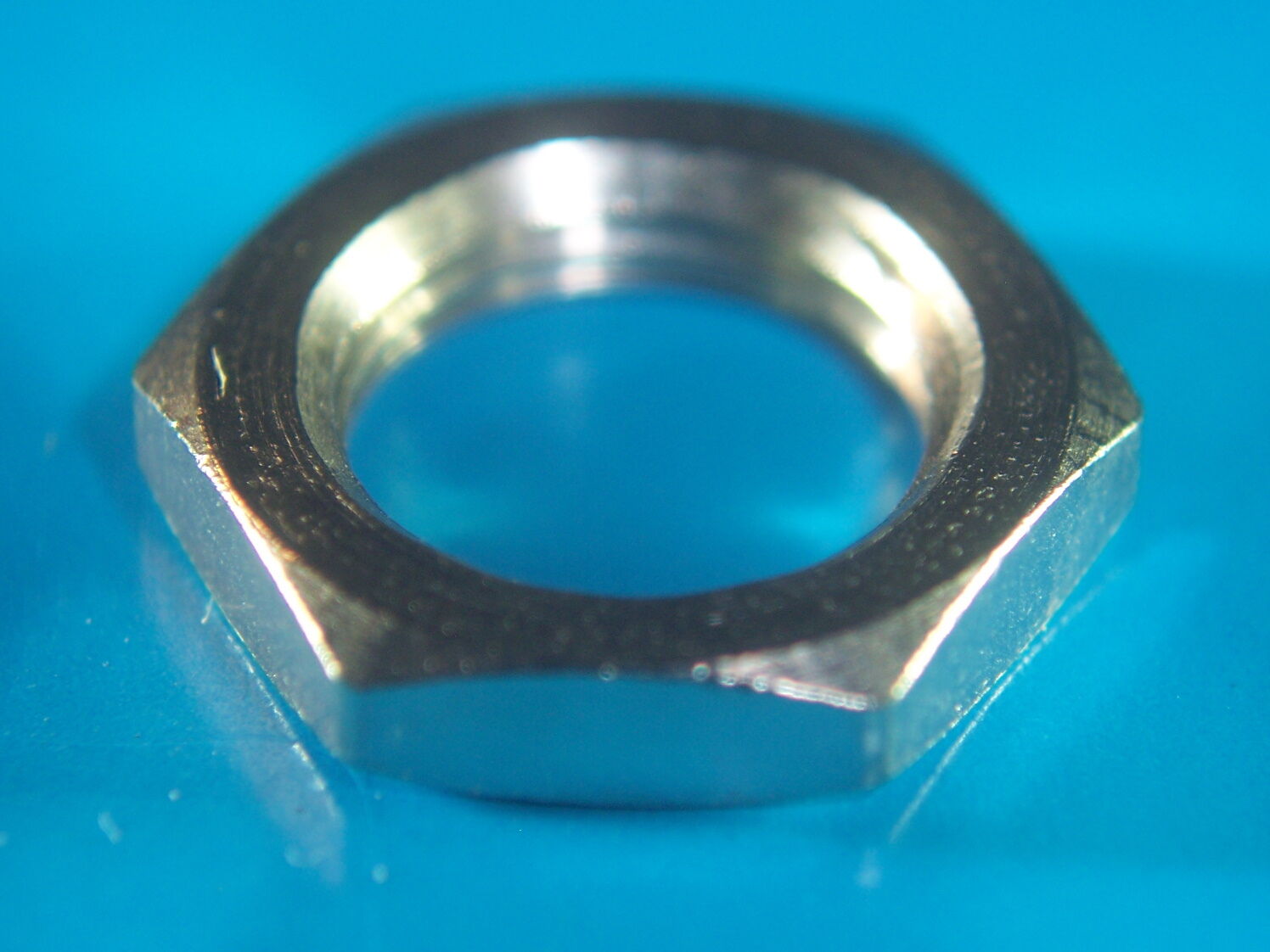 Panel Nut, 3/8" Nut 1/4"-32, Hex Brass Thick Bright Nickel Plated Jam Nuts PK5