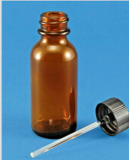 1/2 Oz. Amber Glass Boston Round Bottles w/ Glass "Wand" Applicator Ball Rod Caps